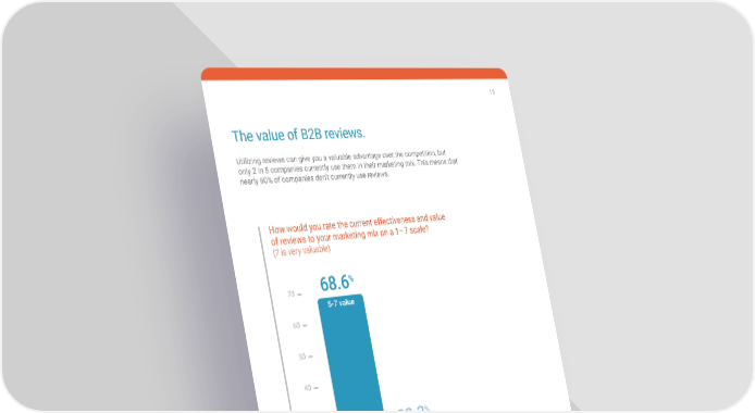 13 The value of B2B reviews . Utilizing reviews can give you a valuable advantage over the competition, but only 2 in 5 companies currently use them in their marketing mix . This means that nearly 60% of companies don’t currently use reviews . How would you rate the current effectiveness and value of reviews to your marketing mix on a 1–7 scale? (7 is very valuable) 68.6% 70 5-7 value 60 50 40 30 22.3% 20 3-4 value 10 3.4% 0 1-2 value 2 CROWD
