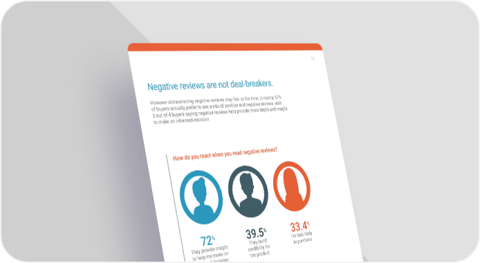 11 Negative reviews are not deal-breakers . However disheartening negative reviews may feel at the time, in reality, 67% of buyers actually prefer to see a mix of positive and negative reviews, with 3 out of 4 buyers saying negative reviews help provide more depth and insight to make an informed decision . How do you react when you read negative reviews? 72% 39.5% 33.4% They provide insight They build I’m less likely to help me make an credibility for to purchase informed decision the product 2 CROWD
