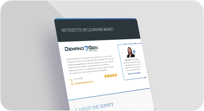 INTERESTED IN LEARNING MORE? ABOUT THE AUTHOR Demand Gen Report is a targeted online publication that uncovers the strategies and solutions that help companies better align their sales and marketing organizations, and ultimately, drive growth. A key component Carol Krol is a marketing of the publication’s editorial coverage focuses on the sales and journalist and storyteller by day, marketing automation tools that enable companies to better measure jewelry designer by night. She’s and manage their multi-channel demand generation efforts. a grammar nerd who loves to create compelling content. 201.257.8528 Read more from Carol. [email protected] ABOUT THE SURVEY The 2017 Content Preferences Survey polled 189 buyers of B2B products and services about their use of content in making purchasing decisions. One-third of respondents serve the technology/software industry, and 28% offer business services/consulting. Fifty-nine percent of respondents were from companies with annual revenue of more than $10 million. More than half (52%) of the respondents hold C-level, VP-level or Director-level positions at their companies. 2017 Content Preferences Survey Report • 12